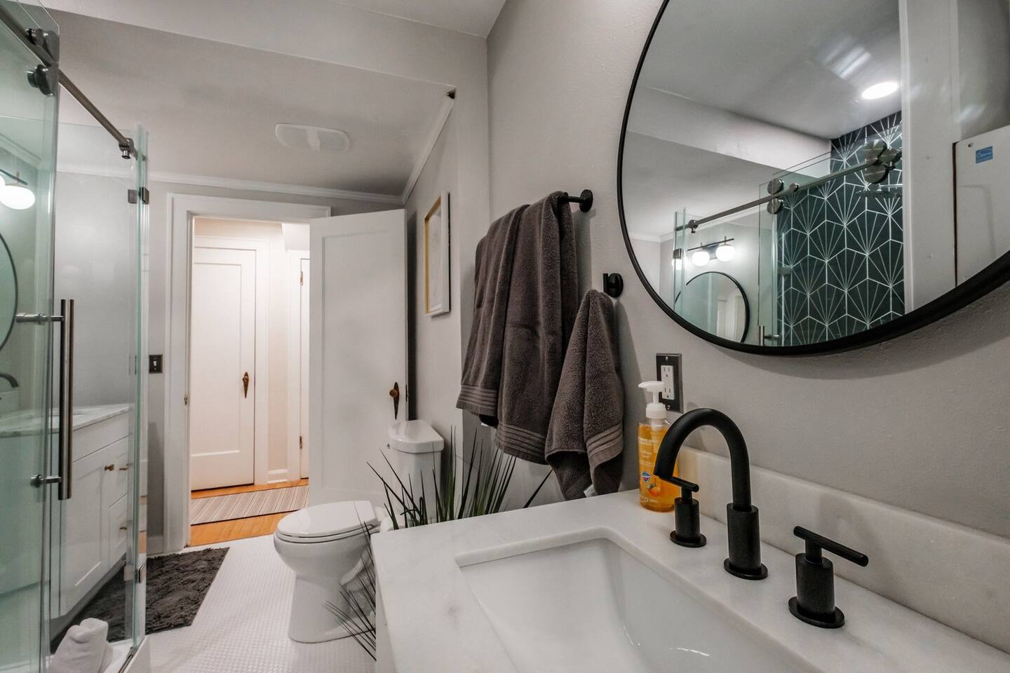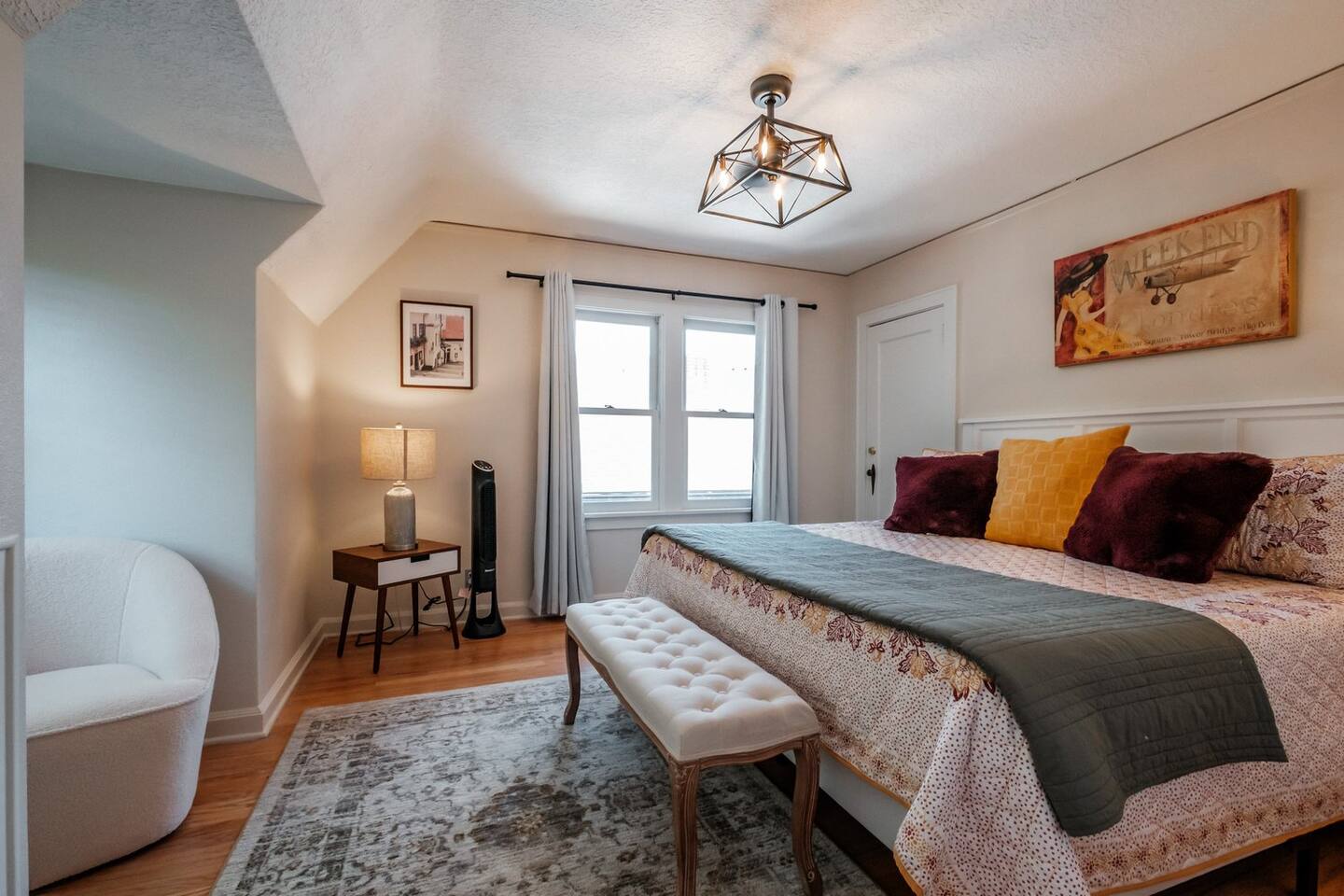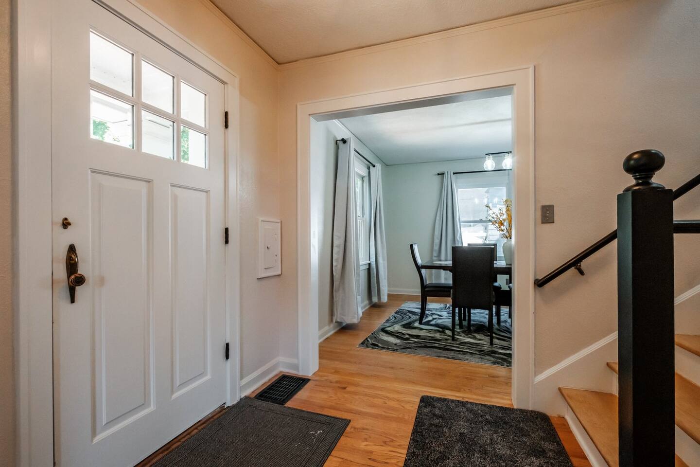 Step inside and discover a welcoming space designed for comfort and convenience. The inviting atmosphere is ideal for enjoying quality time with loved ones. The well-equipped kitchen features modern appliances and ample counter space to prepare delicious meals. The kitchen has everything you need to feel right at home. It is accompanied by a formal dining room to enjoy your meals. You'll find a dedicated working space with a large desk, providing the perfect setting for remote work or study. Stay connected and productive while away from home. As you wind down for the day, find restful nights in the well-appointed bedrooms. Two of the bedrooms are furnished with king-sized beds, providing the ultimate comfort and space. The third bedroom features a queen-sized bed, equally inviting and perfect for a good night's rest. The shared bathrooms are elegantly designed with modern fixtures, ensuring you have a relaxing experience. If an additional sleeping space is needed there is a futon couch outside of one of the upstairs bedrooms. Convenience is further enhanced with a washer and dryer. To ensure that the house remains in excellent condition for all guests, we kindly request no smoking, pets, or parties during your stay. This policy allows us to maintain a pristine and enjoyable environment for everyone. Additionally there is a get-ready lounge — the perfect space to prep for your wedding day, host a photoshoot, or enjoy a fun overnight stay! Available to rent by the hour or for short-term stays, this space is ideal for: 💄 Wedding/bridal prep 📸 Photo shoots & content creation 🎁 Special events & celebrations The space includes: ✨ mirrors for hair & makeup ✨ seating areas + bright decor ✨ Fun photo walls & backdrops ✨ Karaoke machine for extra fun ✨ Flexible rental options: hourly or overnight In addition to the traditional full-living space, this area is perfect for prepping, celebrating, and capturing memories — especially for brides, influencers, photographers, and creatives. The backyard offers an escape, providing opportunities for outdoor enjoyment. Outdoor yard games are provided as well as a small fire pit. Whether it's savoring your morning coffee on the patio or reading a book, this is your private space. The location couldn't be better, with Oregon State University walking distance away, granting you access to various cultural events, college events and educational opportunities. Medical Centers and a plethora of recreational activities are also within easy reach, making this home the perfect base for your Corvallis adventure. We had the unfortunate experience of long term renters completely destroying this beautiful old home which left us with the choice of selling, destroying, or restoring. We opted to save the home and beautifully remodel it for short term renters to enjoy a home away from home while visiting Corvallis.
